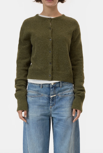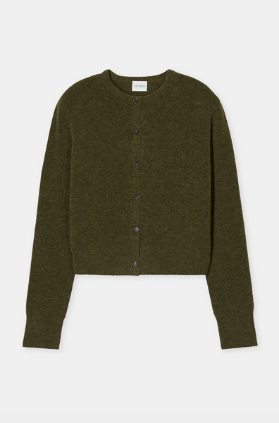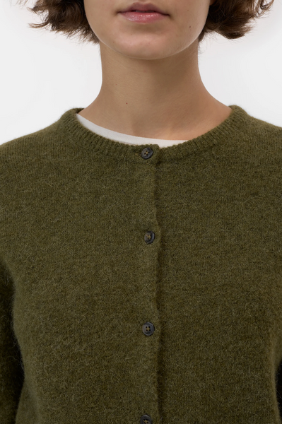 Aus weichem Alpaka-Woll-Mix-Garn gestrickt, kommt dieser Cardigan im Slim Fit mit einem klassischen Rundhalsausschnitt. Er hat fein gerippte Bündchen an den Ärmelabschlüssen sowie am geraden Saumabschluss und eine nach innen verarbeitete Knopfleiste. Die besondere Garnzusammensetzung mit etwas Elastan sorgt für einen hohen Tragekomfort – der Cardigan fühlt sich sehr kompakt und gleichzeitig leicht an.