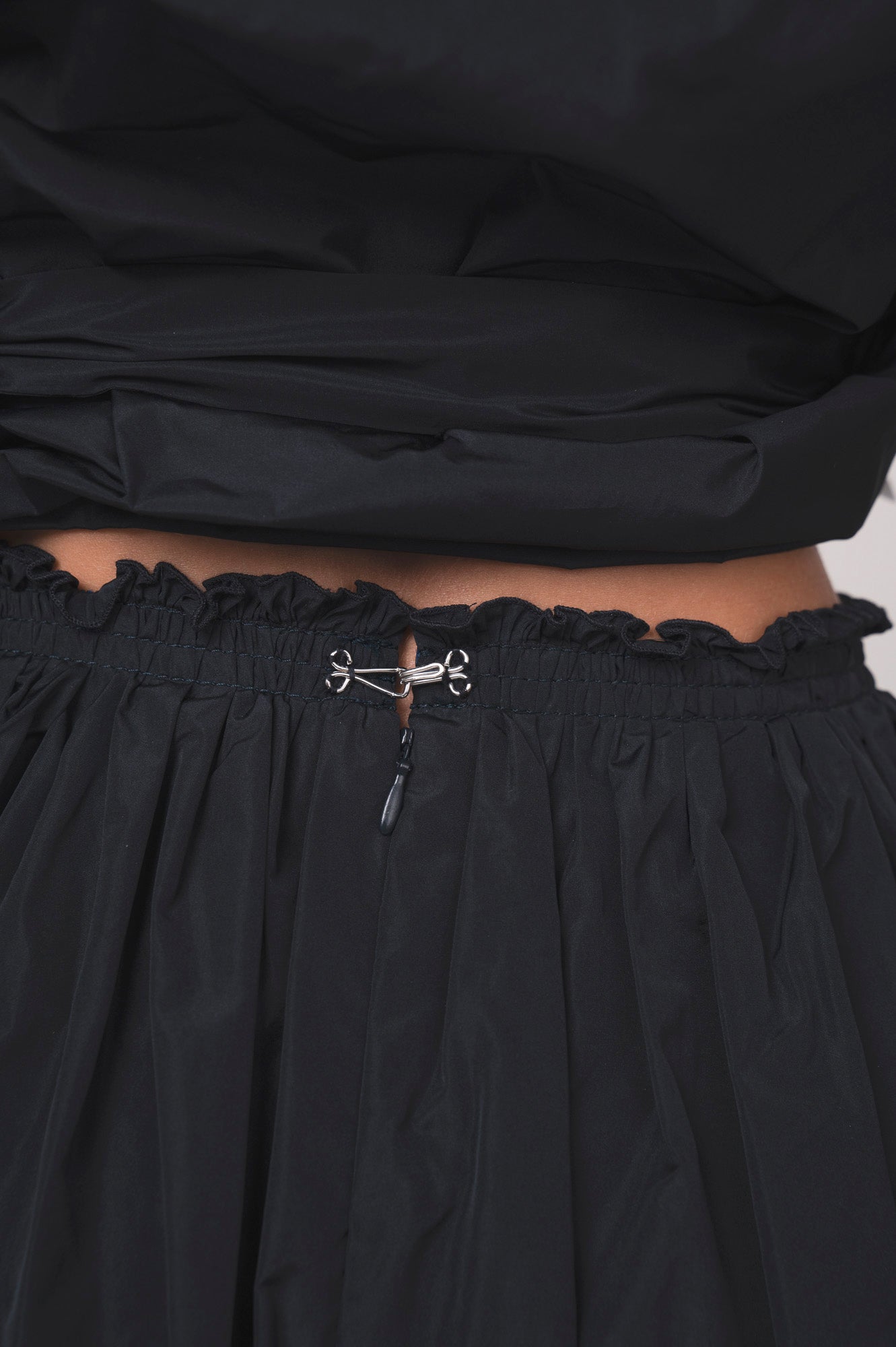 Ausgestellter Faltenrock in "asphalt" mit Bund und Eingrifftaschen. Seitlicher Reißverschluss mit Hakenverschluss.