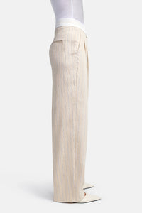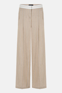 Wide Leg Hose ANNY WAISTBAND in voller Länge. Die weite Hose in Beige besticht mit ihrer lässigen A-Shape Silhouette und einem hochwertigen Leinen-Baumwoll-Mix  - perfekt für stilvolle Sommer-Outfits. Der konstruierte Bund und die doppelte Bundfalte unterstreichen den exklusiven Look.