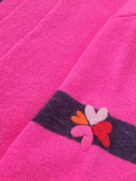 Diese Strickjacke steht für moderne Leichtigkeit und positive Ausstrahlung. Der entspannte Schnitt trifft auf markante Kontraste an den Ärmeln und macht das Design zu einem besonderen Hingucker, ohne an Alltagstauglichkeit zu verlieren.