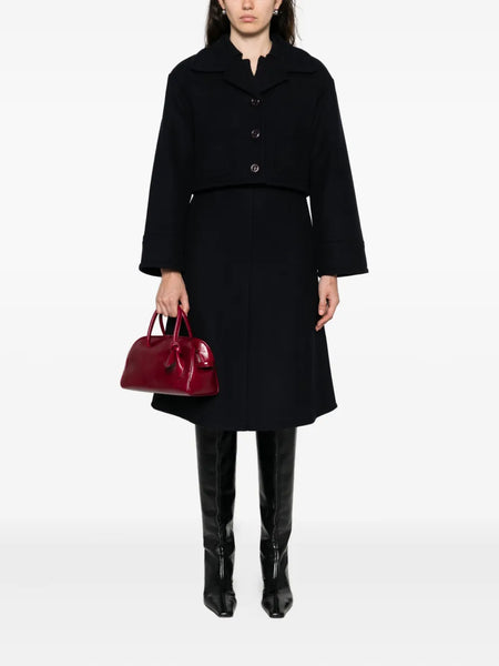 Der kurze Schnitt betont die Taille und sorgt für eine feminine, zugleich lässige Ausstrahlung. Das fallende Revers und der Knopfverschluss vorne unterstreichen den klassischen Charakter der Jacke, während aufgesetzte Taschen dezente Akzente setzen. Lange Ärmel und ein gerader Saum runden das Design harmonisch ab.