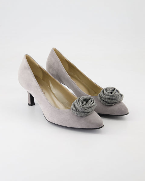 Die grauen Pumps vereinen Eleganz und Komfort auf höchstem Niveau. Das feine Veloursleder-Obermaterial verleiht den Schuhen eine edle Optik, während das Innenmaterial aus Leder für ein angenehmes Tragegefühl sorgt. Die Gummisohle garantiert sicheren Halt, und der 3-5 cm hohe Absatz betont dezent die Silhouette. Ideal für festliche Anlässe oder als stilvolle Ergänzung zum Business-Outfit. Ein vielseitiger Begleiter, der jedem Look eine feminine Note verleiht und dabei hohen Tragekomfort bietet.